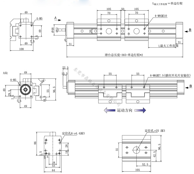 4.滑臺(tái)使用注意事項(xiàng):1.產(chǎn)品工作中嚴(yán)禁接觸滑動(dòng)座并保持安全工作范圍。2.滾珠螺桿產(chǎn)品垂直使用時(shí)【Z軸】為防止物品掉落建議馬達(dá)需安裝剎車裝置;齒輪皮帶驅(qū)動(dòng)不建議垂直使用【Z軸】。3. 有效行程過(guò)大時(shí)可能會(huì)發(fā)生共振,行程越大時(shí)最大速度應(yīng)該相對(duì)的降低。